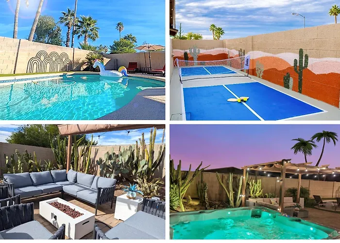 The 2-bedroom Scottsdale Designer Oasis - Private Pool & Insta Getaway Villa is located about a 10-minute drive from Dolphinaris Arizona Aquatic Center and provides Jacuzzis and a hot tub. Providing guests with Wi-Fi and complimentary private parking, this Scottsdale villa is 4.1 miles from McCormick-Stillman Railroad Park.